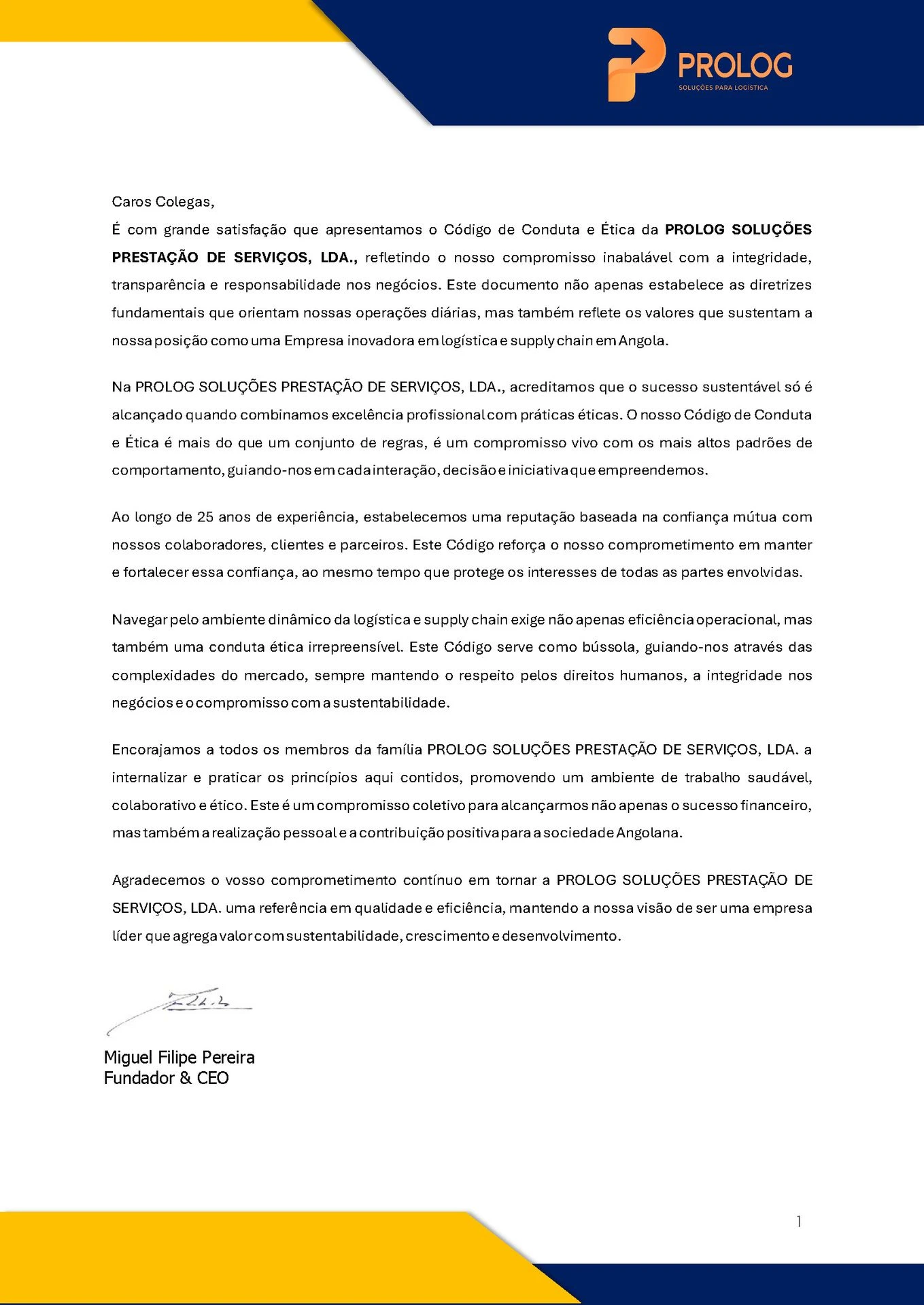 A ProLog enquanto empresa do sector logístico tem como valores os seguintes: